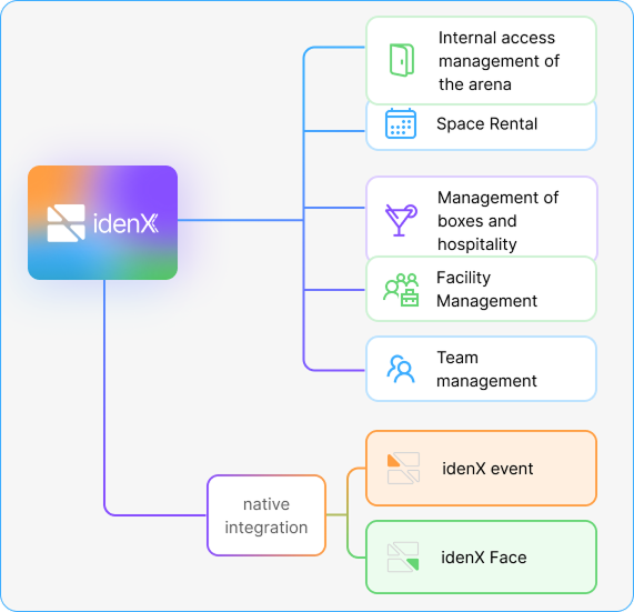 Additionally, the idenX arena encompasses essential facility management, optimizing maintenance and infrastructure, and facilitates team management, ensuring your team is always aligned and productive. Complementing this robustness, the platform incorporates the power of idenX event, designed to transform the organization and execution of events of any size, and idenX Face, our cutting-edge facial recognition technology that guarantees maximum security and unparalleled fluidity in access control, eliminating friction and enhancing the experience for all users. It is the unified solution to elevate the efficiency and control of your arena to a new level.